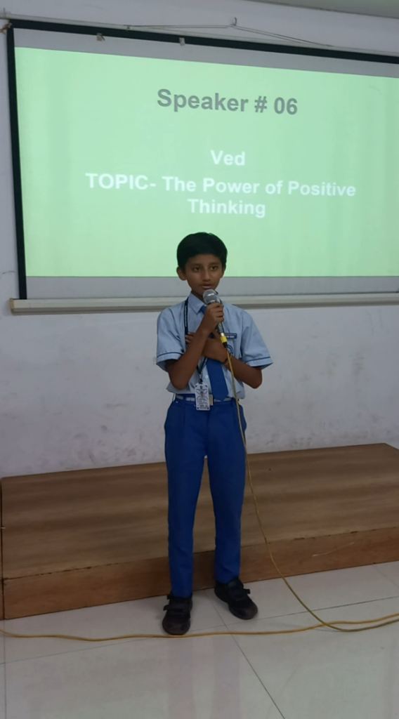 The journey began with a screening round, also held in the auditorium, where students from Grades 6, 7, and 8 took the mic with courage and creativity. Topics like “If I Could Invent One Thing to Help the World,” “Do Screens Connect Us or Separate Us?” and “If Honesty Had a Voice” sparked insightful perspectives. From each house, three promising speakers were selected, setting the stage for a finale to remember.